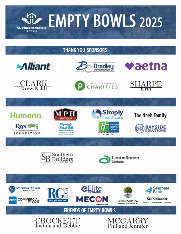 Our annual Empty Bowls event is a family-friendly gathering that brings our community together to raise awareness about hunger and homelessness in St. Petersburg. Each handcrafted bowl represents those in our community whose bowls are too often left empty — serving as a powerful reminder that no one should go hungry or homeless.